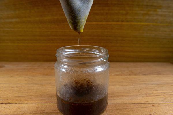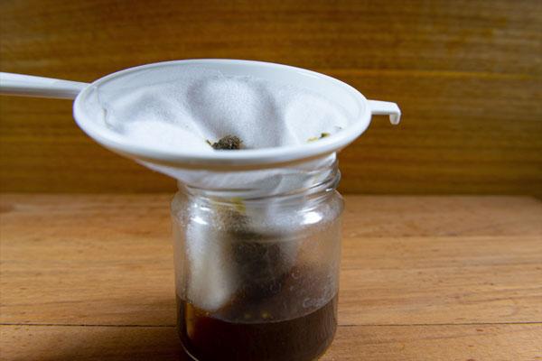 Con la ayuda de un filtro colaremos la mezcla y nos aseguraremos de separar por completo la materia vegetal.