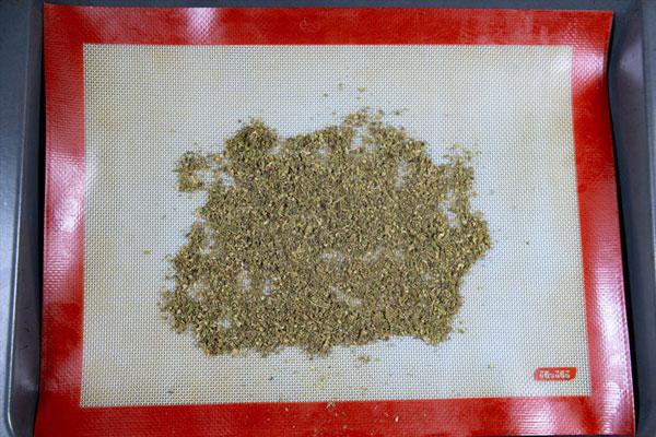 Lo primero que tenemos que hacer es poner los cogollos de cannabis triturados en el horno previamente precalentado a unos 100-115ºC durante aproximadamente 20 minutos.