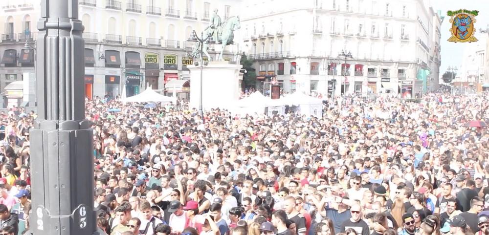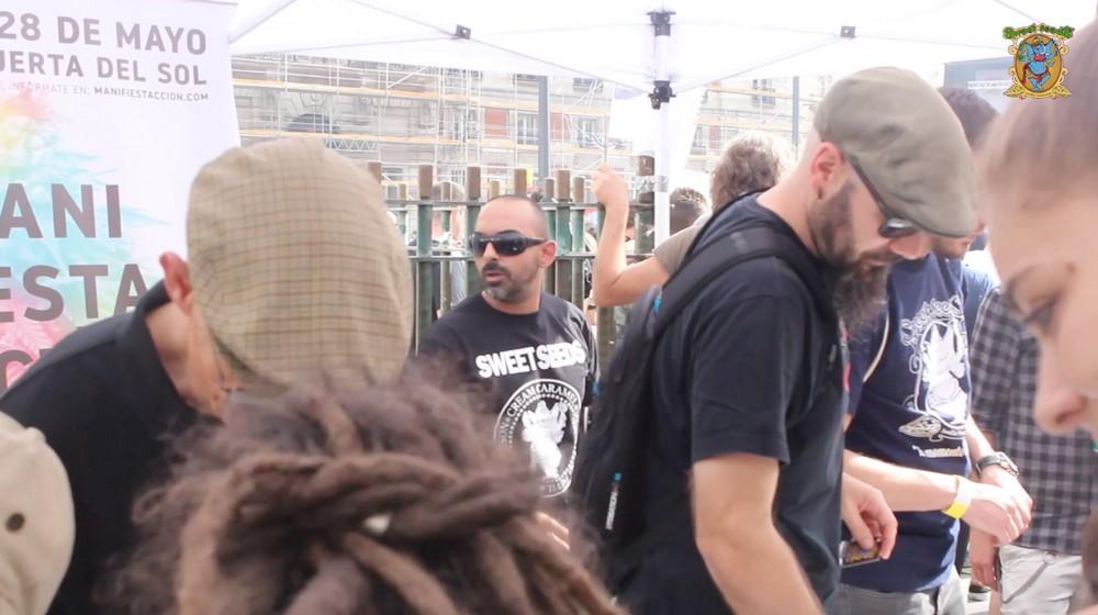 Después de estos alentadores discursos, la fiesta volvió a apoderarse de la mani gracias a las actuaciones y declaraciones activistas de Ikki, Darmo, Ganjahr Family, Gordo Master y Nafri. No dejaba de llegar gente constantemente, desde arriba del bus podíamos observar las calles que llegan a la plaza colapsándose. Miles de canutos fueron dejando un aroma en Sol que, pese a la presencia policial, aumentaba según el sol iba cayendo.