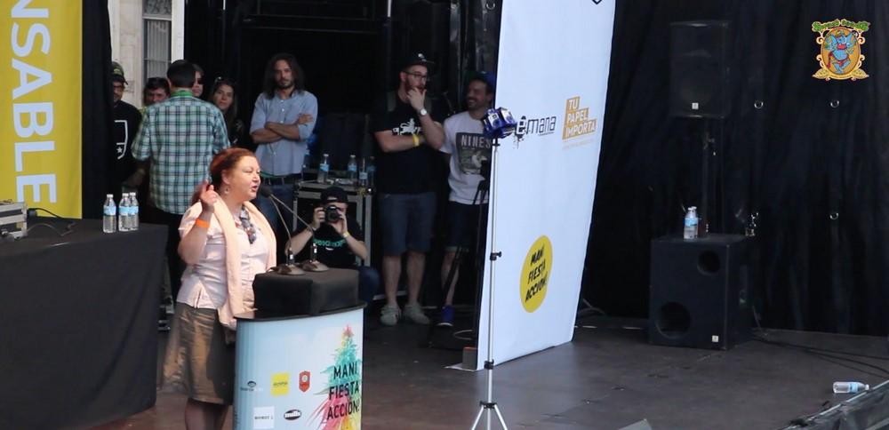 Sobre las cinco de la tarde, por fin, empezaron a sonar los altavoces con los vídeos promocionales de la fiesta y la lectura del manifiesto por parte de Álvaro Zamora de Leaf Life, uno de los tres impulsores y coordinadores de ManiFiestAcción, que – entre calamos de agradecimiento y aplausos – dio paso al primer bloque musical.