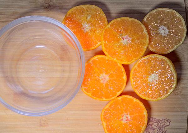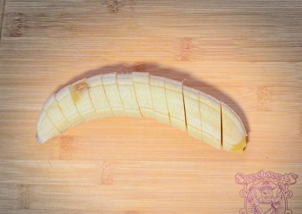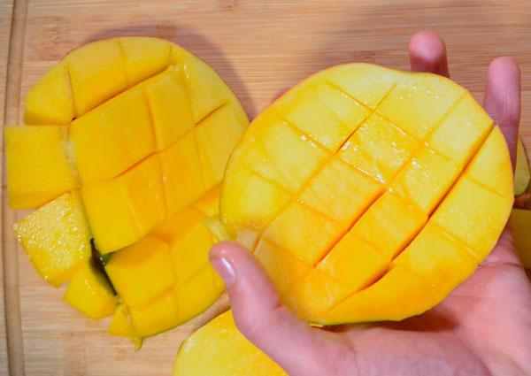 Lo primero que hay que hacer es pelar y trocear en pequeños dados el plátano y el mango. Luego exprime las mandarinas y reserva el zumo de mandarina.