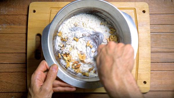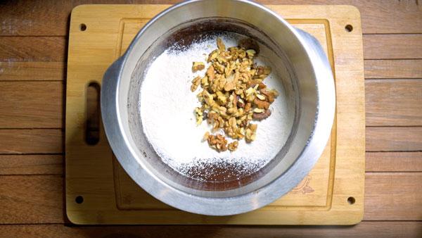 Una vez incorporemos la harina, añadiremos las nueces peladas y troceadas.