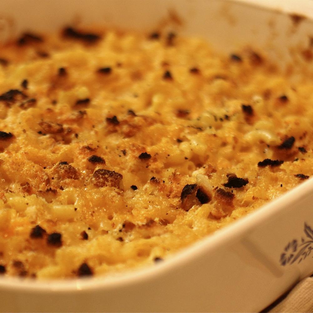 Añadiremos más queso por encima juntos con pan rallado, y especias al gusto – como por ejemplo pimienta molida, tomillo y orégano -. Para ser fieles a la receta americana habría que añadir galletitas de cheddar troceadas y panko en lugar del pan rallado.