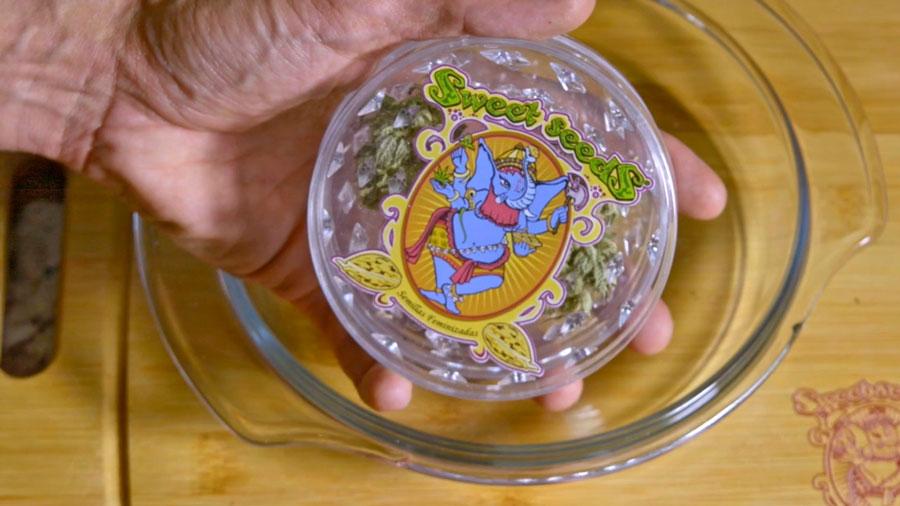 Lo primero que tendrás que hacer es triturar la marihuana con un grinder para tenerla preparada, es importante desmenuzarla bien.