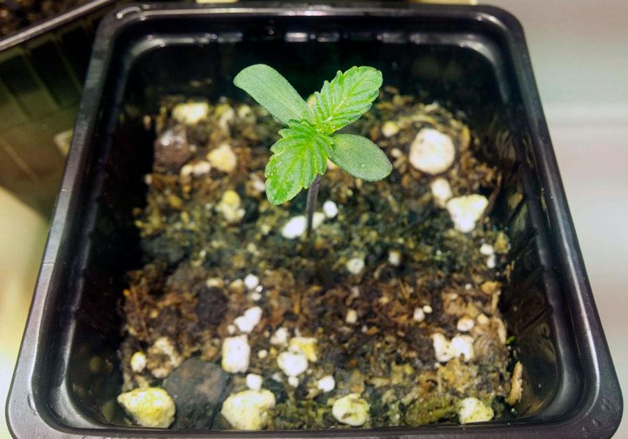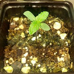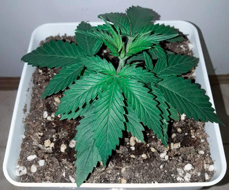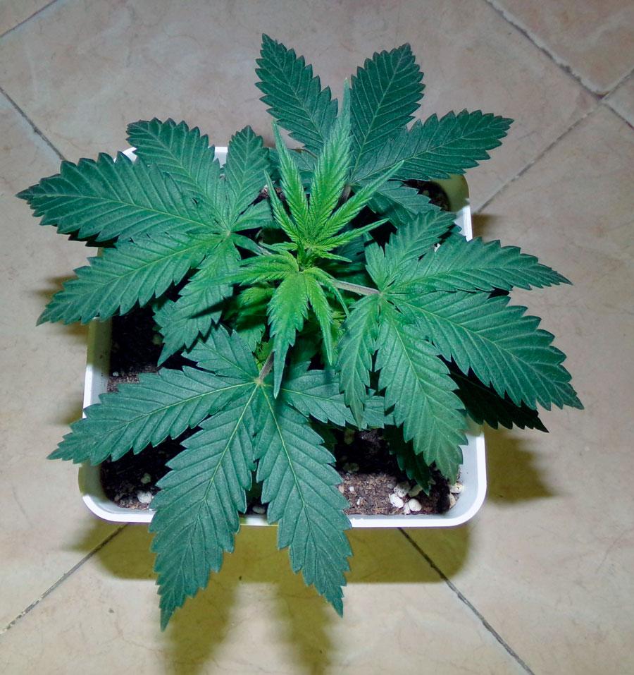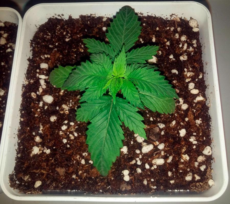 In this first week of growth the pot used is of 0,25 litres. Light cycle of 18 consecutive hours (HID 400W) at a 26º C temperature.