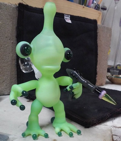 Los artistas llevan a cabo un proceso de inyección de pequeñas cantidades de aire, gracias a un tubo de soplado, en una pieza de vidrio fundida, formando una capa elástica en el interior de la pieza, y tras su modelado conseguir la forma deseada sin que ésta pierda la maleabilidad que le producen las altas temperaturas del soplete – mediante una mezcla de propano y oxígeno -. Cuando el artista obtiene el diseño deseado, lo coloca en un horno eléctrico de templado donde continúa cociendo de forma gradual, para evitar roturas debidas a cambios bruscos de temperatura, hasta enfriarse por completo. Cada parte de la pipa debe realizarse por separado para luego ser ensambladas en una sola pieza, por lo que es necesario un diseño previo, no sólo creativo, sino también técnico, para asegurar el correcto funcionamiento de la misma. Es una labor muy minuciosa, se precisa de mucho entrenamiento y creatividad para dominar la técnica.