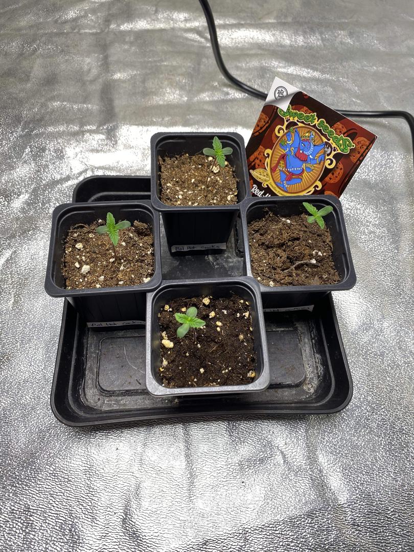 4 seeds of Red Hot Cookies® were used and all the seeds sprouted without any problem. They were then planted in 0.4 litre pots.