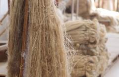 Tras salir de los obradores, las fibras estaban listas para su posterior proceso, dando lugar a diferentes productos; Pasamos a la siguiente nave.