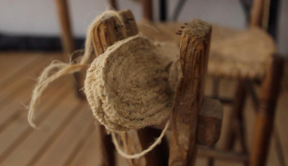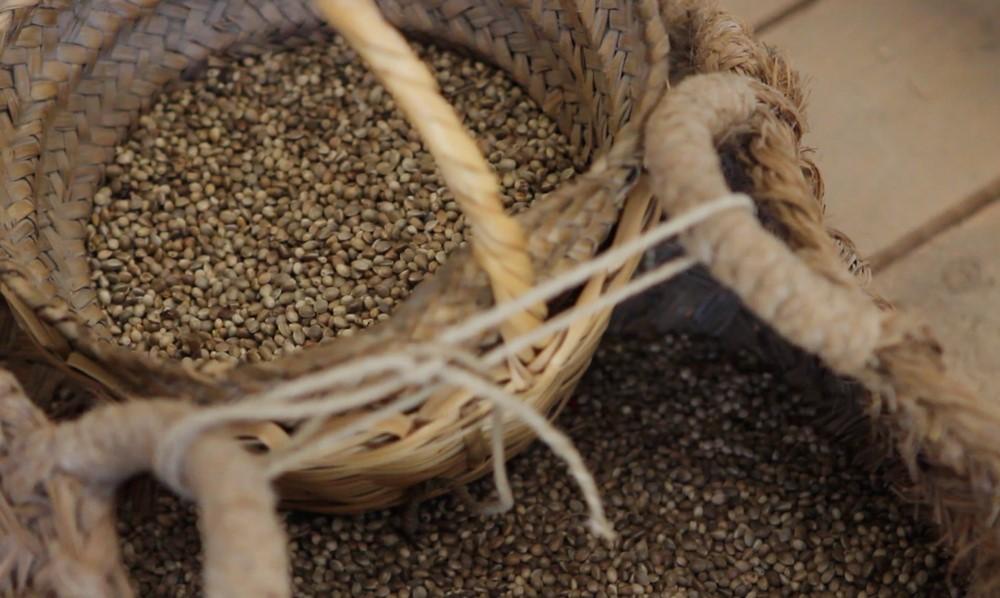 Con una pequeña cesta de mimbre en una mano, Roque sostiene un puñado de las semillas de cáñamo que contenía, y las devuelve en forma de cascada a la cesta apuntando que ellas son el secreto de este humilde museo y toda esta industria.