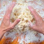 A medida que vamos mezclando iremos añadiendo la harina de a poco, nunca se añade toda la harina junta, ya que debemos ir controlando que la mezcla quede homogénea, blanda y un poco pegajosa. El exceso de harina hará que los ñoquis queden muy pesados y difíciles de digerir.