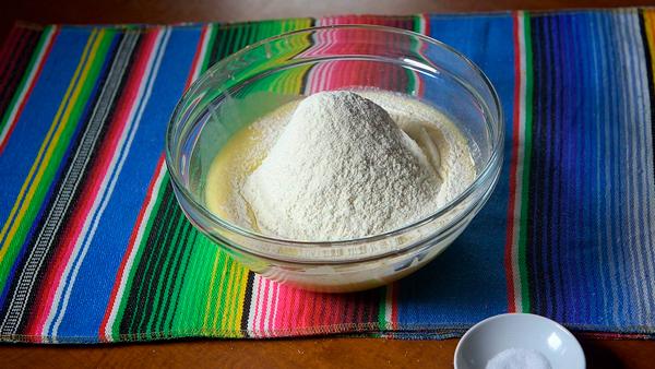 Ahora añadiremos la sal y la harina tamizada (con esto conseguiremos un pan más esponjoso). Removeremos hasta que no queden grumos. Una vez lo tengamos listo taparemos el recipiente y dejaremos reposar durante 20 minutos.