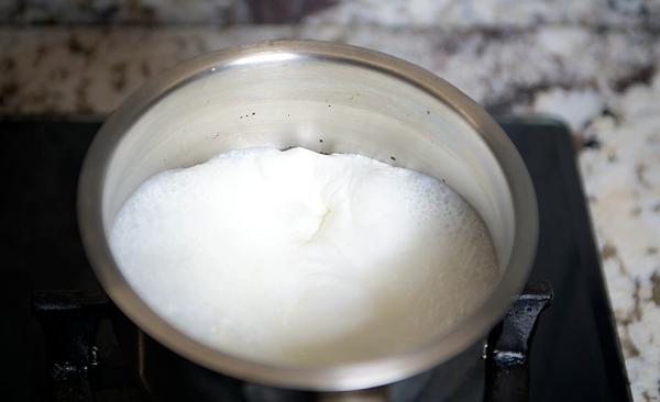 En una olla pondremos la leche, la llevaremos a ebullición y dejaremos hervir durante un minuto. Dejaremos que la leche enfrié un poco.