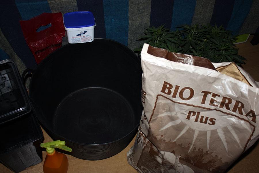 Una vez tenemos preparado y desinfectado todo el material necesario, prepararemos la nueva maceta donde se va a trasplantar la planta de marihuana. Tendremos que llenar con un buen sustrato, aproximadamente hasta la mitad del recipiente, el cual presionaremos ligeramente para así obtener una buena consistencia para las raíces.