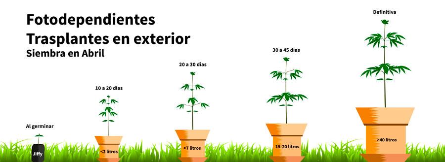 - Sembrando en abril: Este sería el último trasplante que se va a realizar y será a una maceta de 40 litros o más, pero debe realizarse antes de que la planta inicie su periodo de floración.
