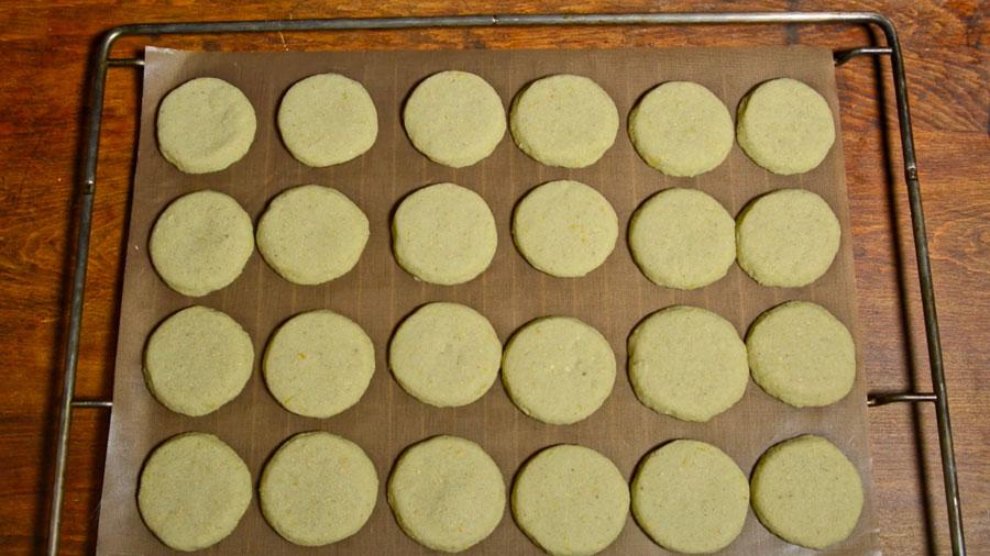 Con un vaso o molde iremos cortando los círculos, los cuales iremos colocando en una bandeja de horno. Te recomendamos dejar una separación de unos 3 centímetros entre ellos.