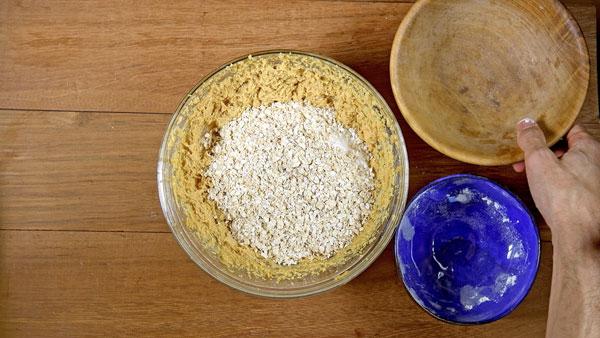 Para terminar con la masa de nuestras Galletas Do Sweet Dos Girl Scouts solo nos queda añadir la harina y la avena e integrarlos por completo.