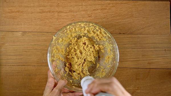 En un bol colocaremos la mantequilla a temperatura ambiente y el azúcar. Batiremos durante dos minutos. Cuando estén integrados añadiremos la mantequilla de maní cannábica y volveremos a mezclar muy bien.
