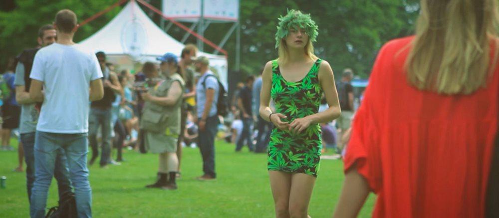 En el centro de todas las personas que había en el evento se encontraba una torre con una hoja de marihuana, que señalaba el punto de información dónde había diferentes folletos informativos sobre el evento, la planta de marihuana, y su cultivo, facilitados por diferentes marcas del sector del cáñamo y el cannabis en Holanda. Alrededor de la masa de gente había diferentes puestos que según nos acercamos fuimos identificando como foodtrucks, hot dogs, hamburguesas, crêpes, comida vegana, tacos… ¡Para todos los gustos! Un tío vivo decoraba un lateral del recinto, junto a una haima en la que podías vaporizar tus muestras de cannabis, o informarte sobre ello.  Hamacas, mantas y toallas por todo el césped con gente bailando, comiendo, fumando, el ambiente era propio a una utopía.