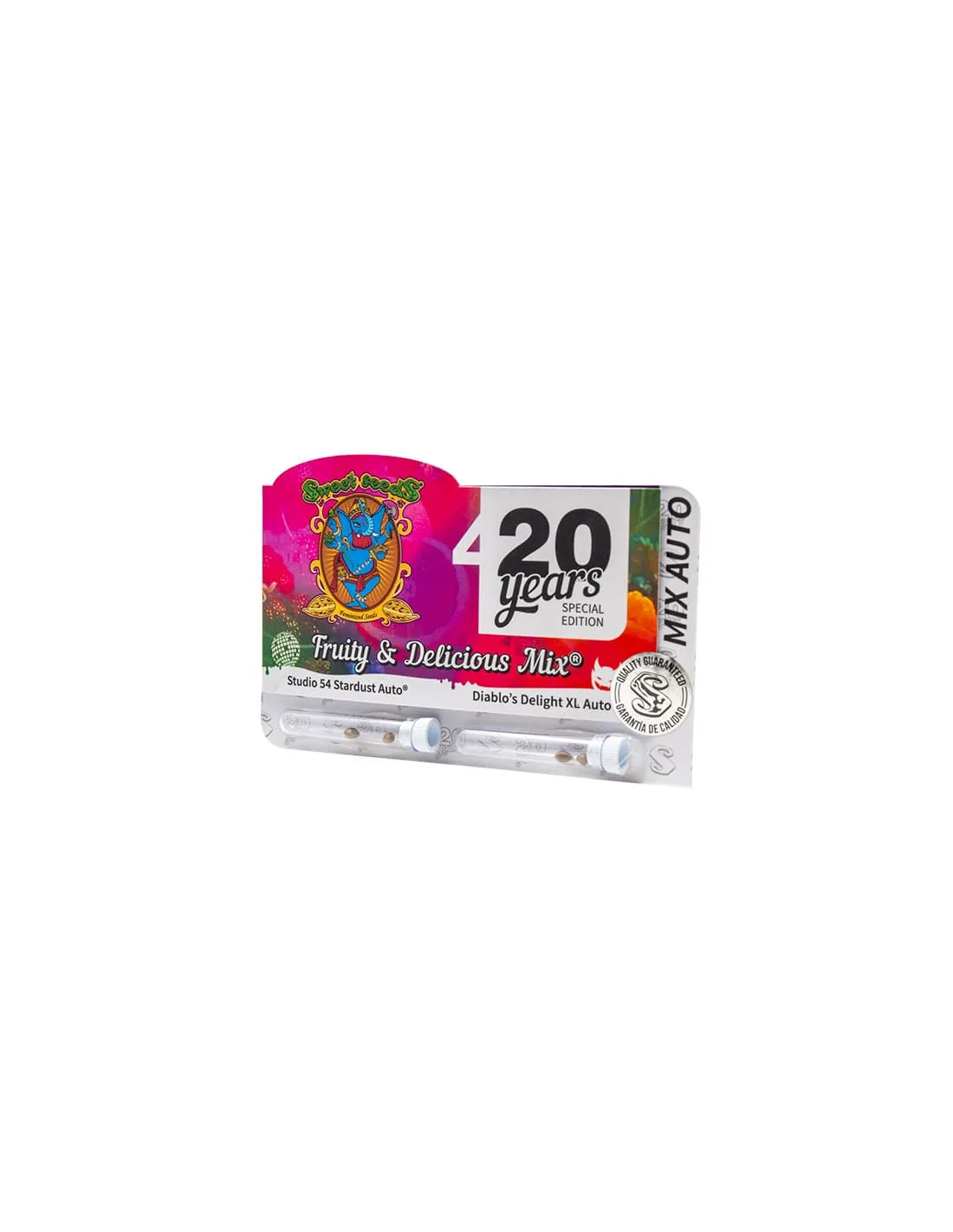 Este Pack Mix Especial 20.º Aniversario combina dos variedades diferenciadas en el pack, con perfiles terpénicos intensamente afrutados y matices exóticos. Una selección de semillas de colección que destaca por su diversidad y riqueza aromática.
