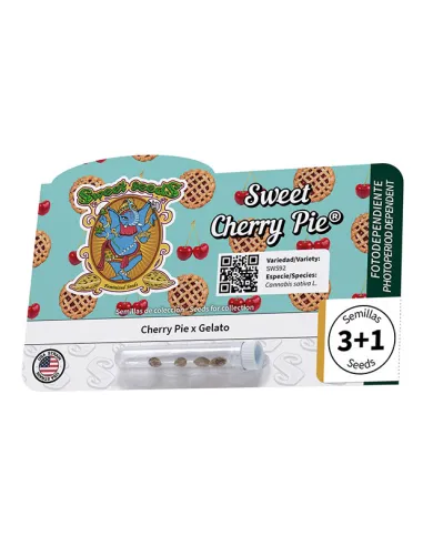 Hybridsorte aus der Kreuzung zweier ausgewählter Eliteklone, zwei Schwergewichte der amerikanischen Cannabiszucht mit hohem THC-Gehalt, Cherry Pie (Grand Daddy Purple x Durban Poison) x Gelato (Sunset Sherbet x Thin Mint Cookies).