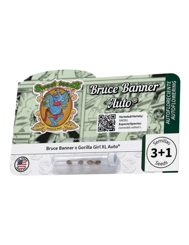 Bruce Banner Auto® (SWS91) ist eine sehr aromatische selbstblühende Sorte, mit einem hohen THC-Gehalt, der bis zu 25% erreichen kann, wobei einige Exemplare diesen Wert überschreiten können. Das Ergebnis der Kreuzung eines Elite-Klons von Bruce Banner und einer ausgewählten Sorte unserer selbstblühenden Gorilla Girl XL Auto® (SWS82).