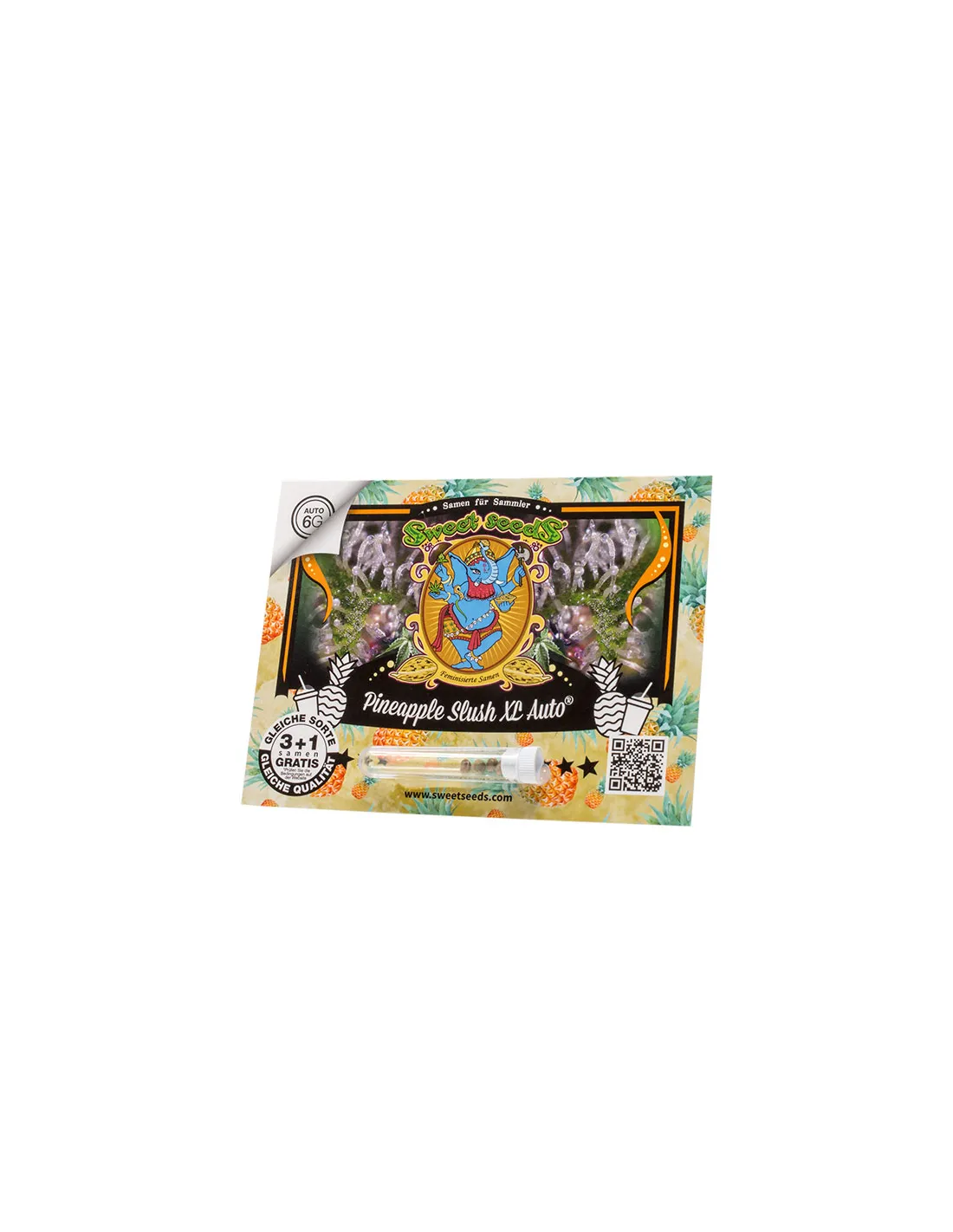 Die Pineapple Slush XL Auto® ist eine Sorte, die von Sweet Seeds® im Februar 2025 auf den Markt gebracht wurde. Wir sind zuversichtlich, dass ihre außergewöhnliche Qualität mit der Zeit bei verschiedenen Cannabis-Veranstaltungen anerkannt wird. Wir laden dich ein, einer der ersten Grower zu sein, die diese außergewöhnliche Sorte bei einem Wettbewerb präsentieren.