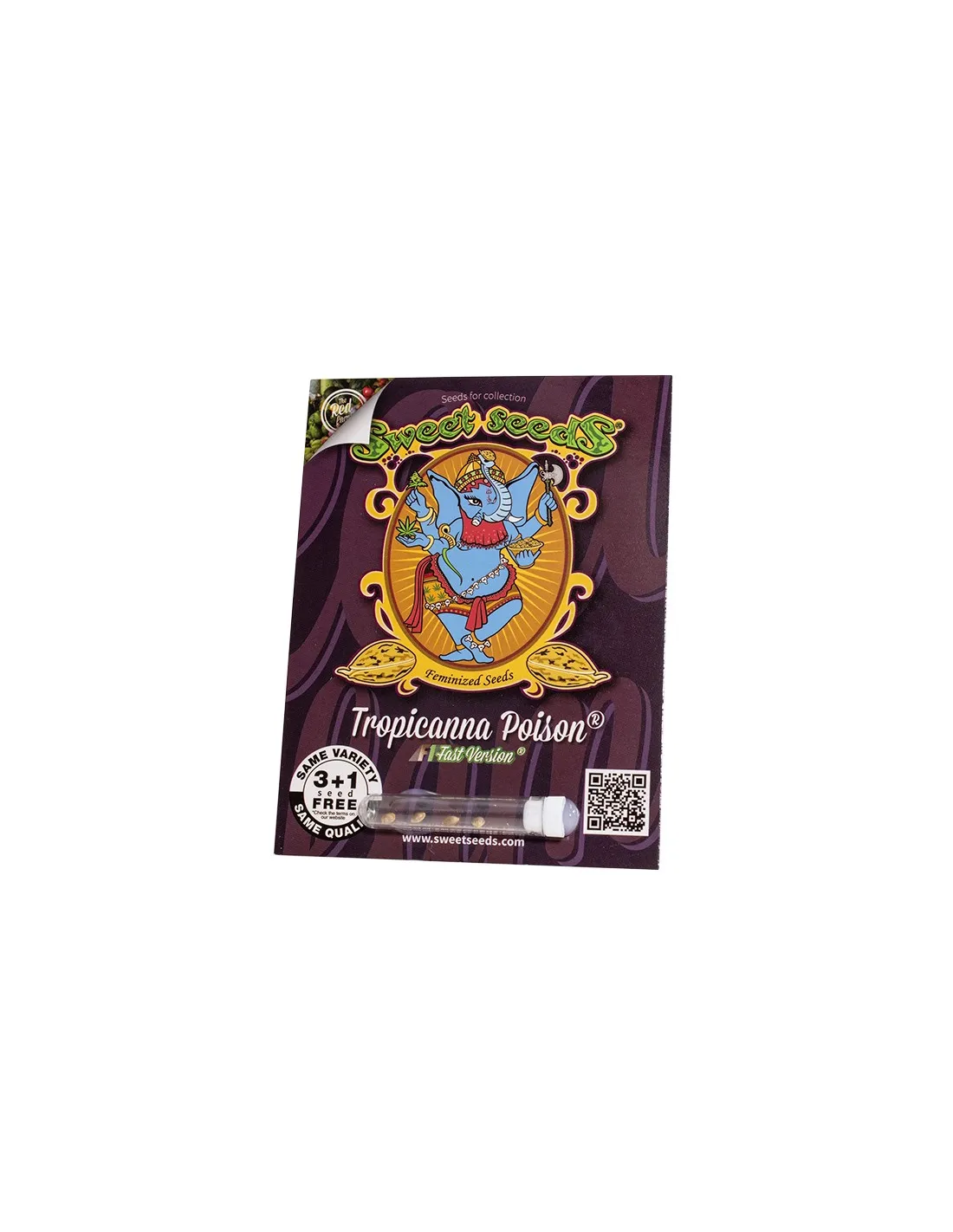 Tropicanna Poison F1 Fast Version® is the result of the cross between a selected elite clone of Tropicanna Cookies, from a red-flowered phenotype, and our highly regarded red-flowered autoflowering strain, Red Poison Auto® (SWS39).