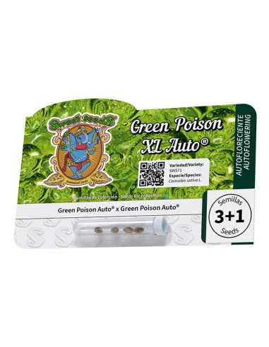 Green Poison XL Auto® (SWS71) se ha desarrollado mediante un programa de selección recurrente de individuos de talla alta de Green Poison Auto® durante múltiples generaciones. Estas semillas producen plantas con una altura un 25% superior a sus antecesoras, con una producción de flores y resina igualmente superior.