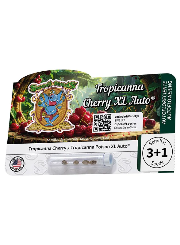 Tropicanna Cherry XL Auto® es una variedad lanzada por Sweet Seeds® en enero de 2026 y estamos seguros de que, con el tiempo, su calidad excepcional se verá reflejada en distintos eventos cannábicos. Invitamos a los coleccionistas a descubrir su potencial y a presentarla en futuras competiciones.