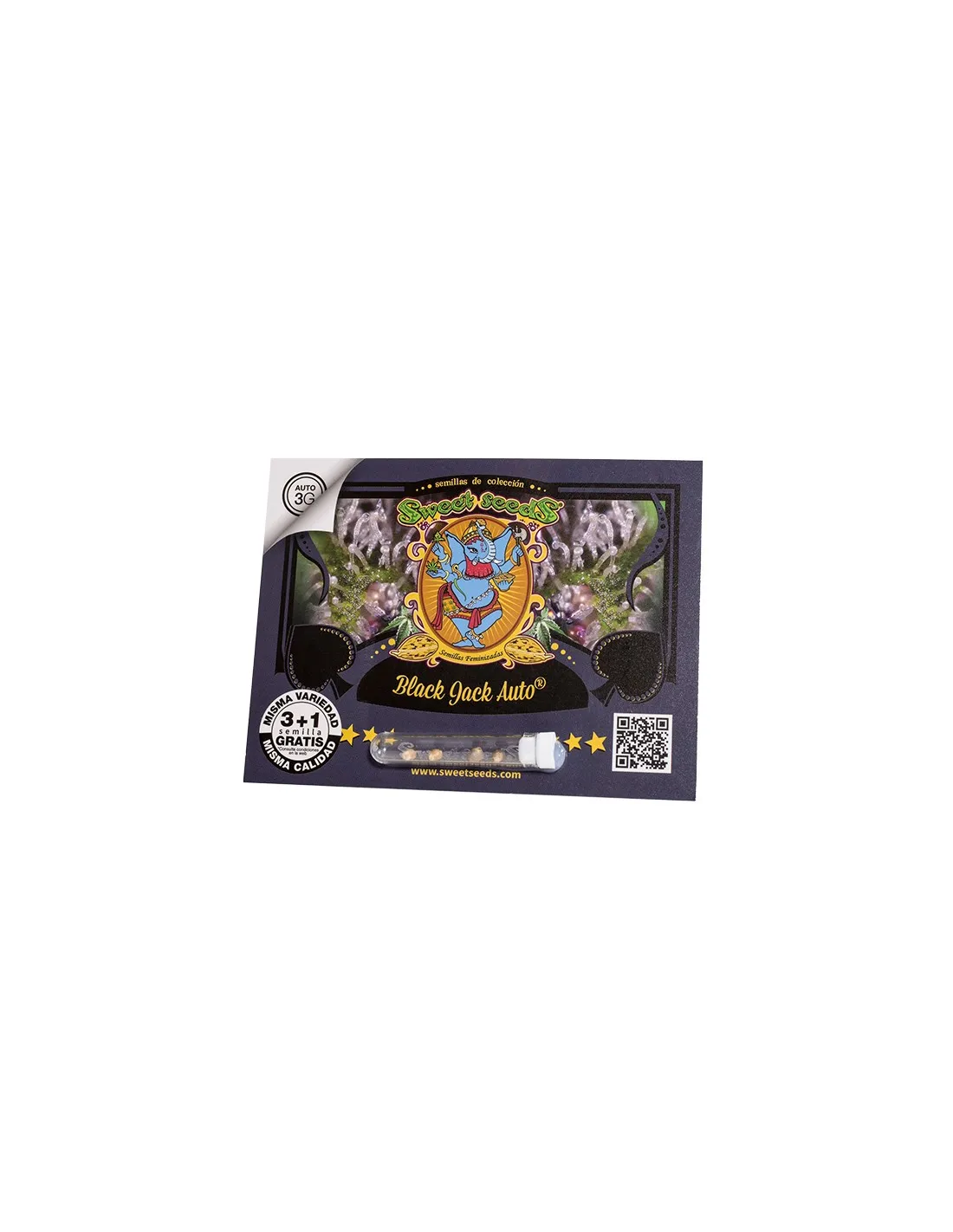 Autofloreciente de 3ª Generación. Versión autofloreciente de nuestra variedad Black Jack® (SWS01). Resultado del cruce de nuestra variedad autofloreciente S.A.D. Sweet Afgani Delicious Auto® (SWS24) de 2ª Generación, con nuestro clon élite de Jack Herer.