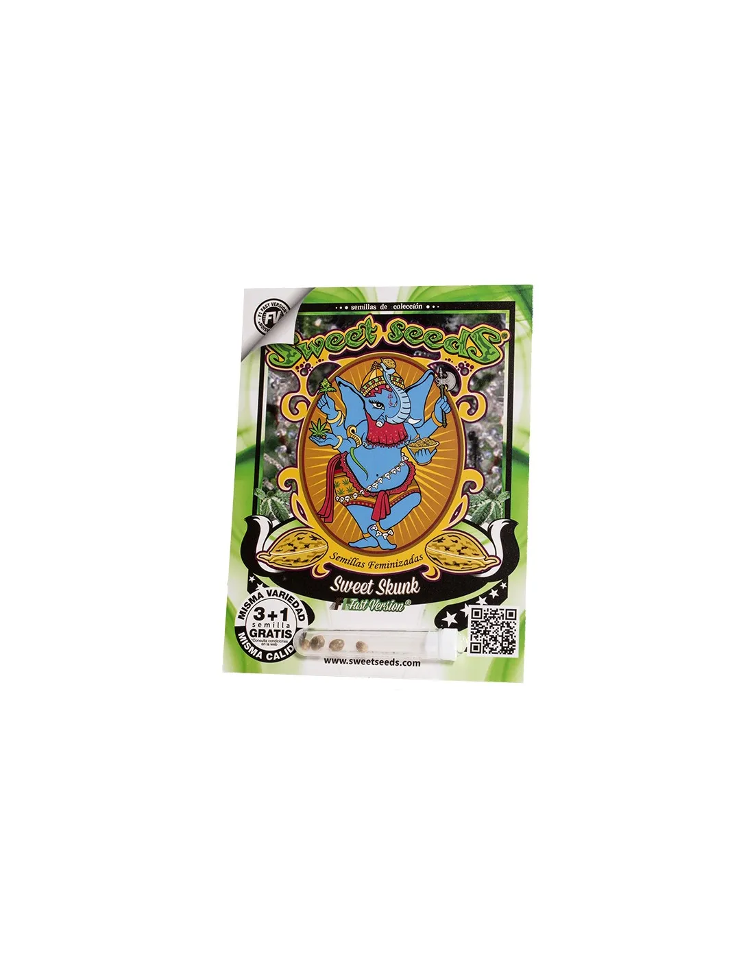 Esta genética es el resultado de la hibridación entre una cepa seleccionada de nuestra variedad Sweet Skunk Auto® (SWS34) y un clon élite de Early Skunk. El híbrido F1 resultante del cruce de genéticas automáticas con genéticas fotodependientes da como resultado una genética Skunk fotodependiente y de floración muy rápida. El aroma de esta variedad es muy dulce y especiado dentro del clásico y apreciado aroma de la familia Skunk. Produce gruesos cogollos cargados de abundante y aromática resina.