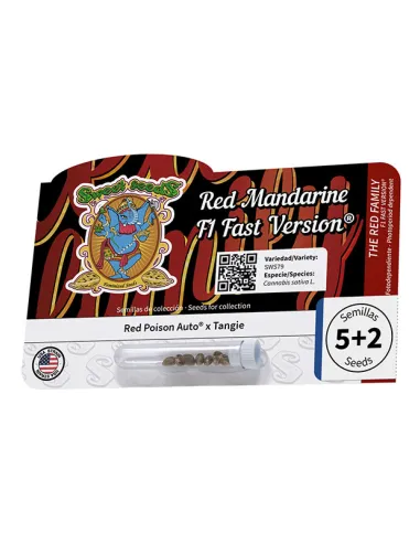Nuestra primera variedad fotodependiente de flor roja. Híbrido resultante del cruce entre nuestra Red Poison Auto® (SWS39) y un clon élite fotodependiente de Tangie (California Orange x híbrido Skunk), de un raro y poco frecuente fenotipo de flor roja, de maravilloso aroma y sabor intenso a mandarina.