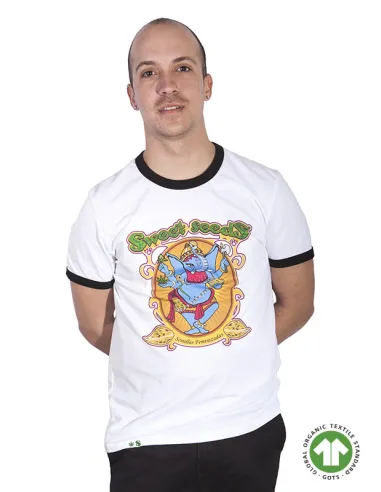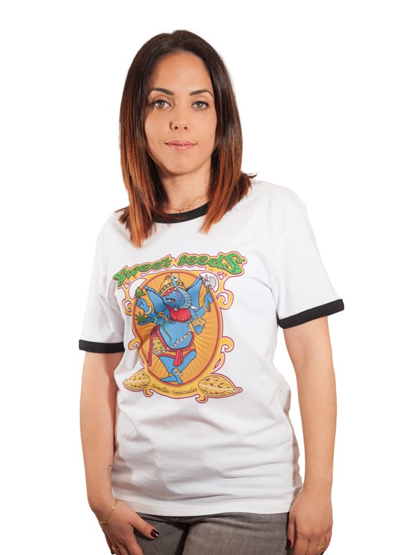 Bordes de mangas y cuello en color negro y pequeña etiqueta cosida con detalle Sweet Seeds®