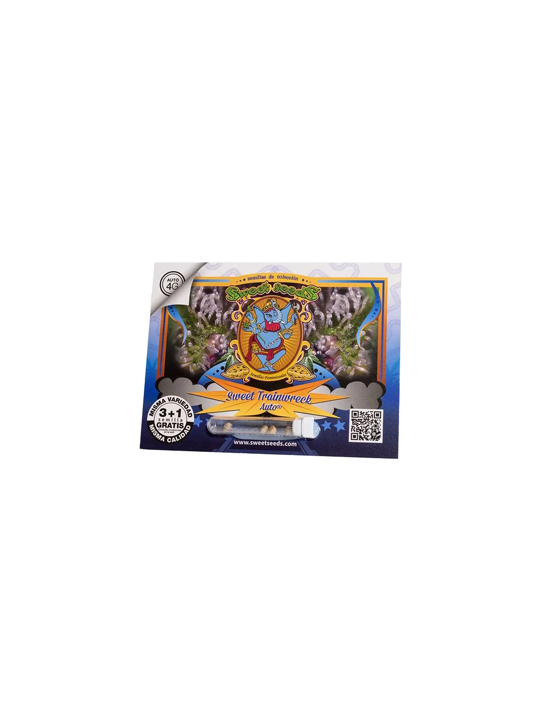 Variedad autofloreciente de talla alta. Autofloreciente de 4ª Generación. Híbrido resultante del cruce entre varias cepas seleccionadas de autoflorecientes de 3ª Generación de talla alta, y un clon élite de Trainwreck muy famoso y utilizado en dispensarios de cannabis medicinal en EE. UU.