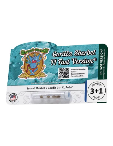 Version féminisée et photodépendante à floraison ultra-rapide de la célèbre souche américaine Sunset Sherbet (Girl Scout Cookies x Pink Panties). Cette dernière est l'une des plus dignes représentantes de la famille des Cookies, très appréciée dans les dispensaires de cannabis médical et récréatif des USA, où elle est distribuée afin de soulager les symptômes liés au stress et aux troubles de l'humeur. Souche hybride F1 résultant du croisement entre un clone élite de Sunset Sherbet et notre variété autofleurissante Gorilla Girl XL Auto® (SWS82) [Gorilla Girl® x Sweet Gelato Auto® (SWS74 x SWS76)].