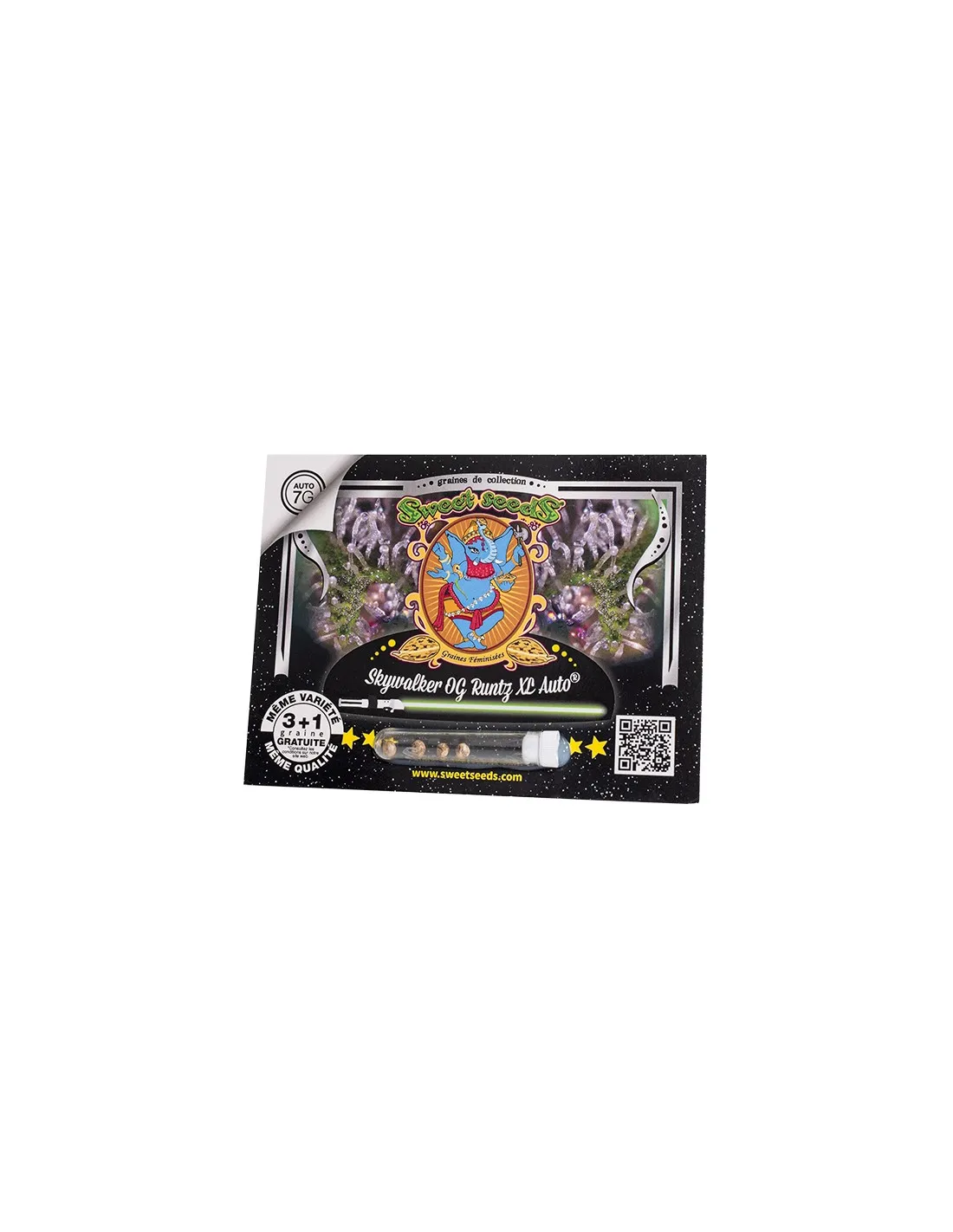 Autofleurissante de 7e Génération. Version autofleurissante de la Skywalker OG (OG Kush x Skywalker). Il s'agit d'une plante principalement indica, au rendement élevé, très appréciée sur la Côte Ouest des États-Unis : une OG Kush à haut rendement. Pour introduire les gènes d'autofloraison, nous avons utilisé notre Runtz XL Auto® (SWS88) [Runtz (Z x Gelato) x Sweet Gelato Auto® (SWS76)].