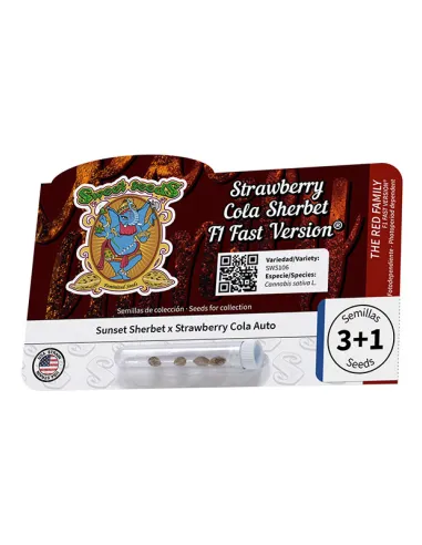 Varietà femminizzata e fotodipendente con fioritura ultrarapida e fiore rosso. È la prima generazione filiale (F1) nata dall’incrocio tra un clone d’élite fotodipendente della prestigiosa Sunset Sherbet e un ceppo autofiorente selezionato di Strawberry Cola Auto. Il risultato è Strawberry Cola Sherbet F1 Fast Version®, un poli-ibrido indica-sativa a predominanza indica che si contraddistingue per velocità, produzione di resina e un profilo aromatico complesso e delizioso.