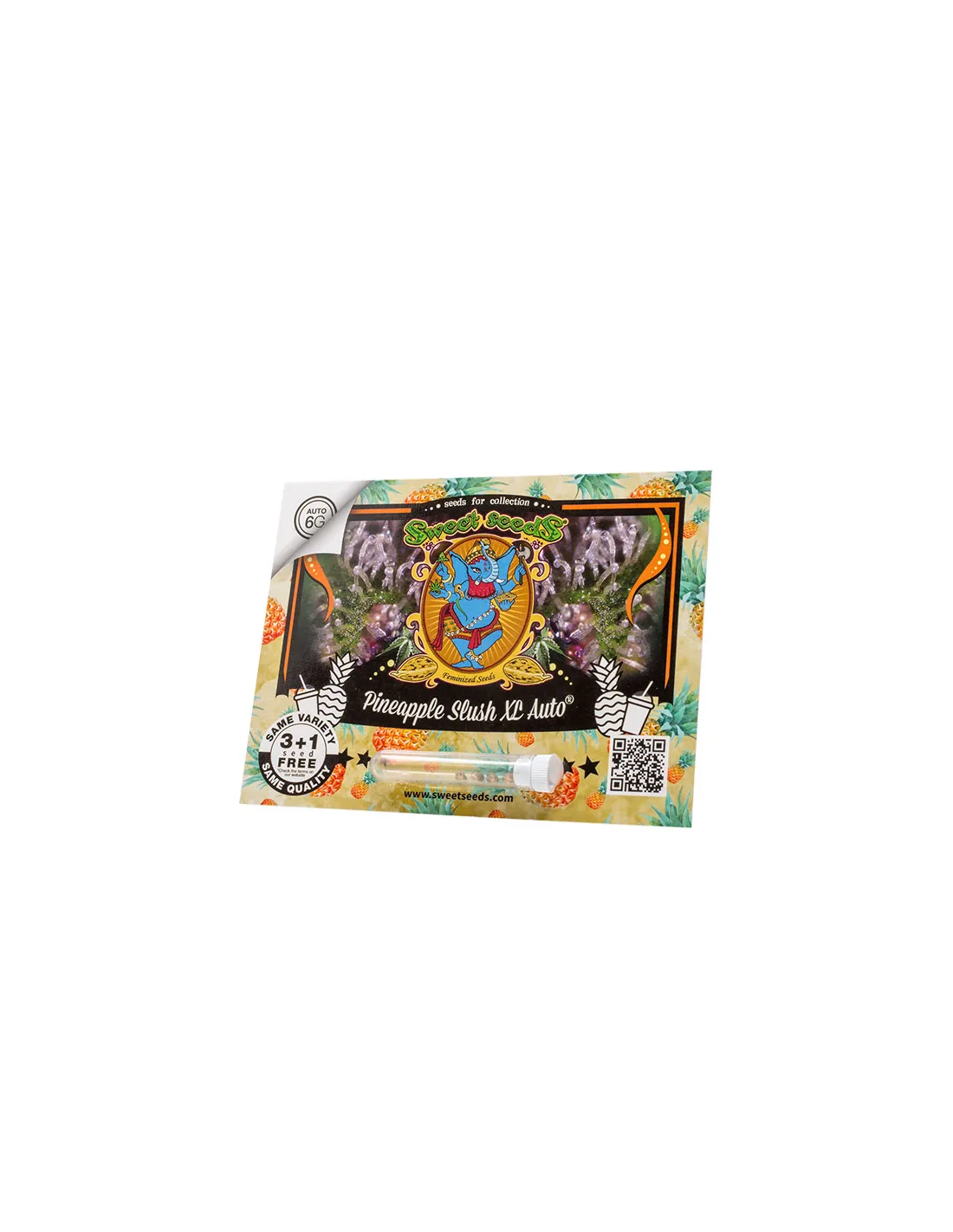 Wyjątkowo duża, bogata w żywicę i aromatyczna odmiana automatycznie kwitnąca 6. generacji. Łączy geny egzotycznego gatunku Pineapple Express (Trainwreck x Hawaiian) z mocnym i aromatycznym kultiwarem Sweet Mandarine Z XL Auto® (SWS102).