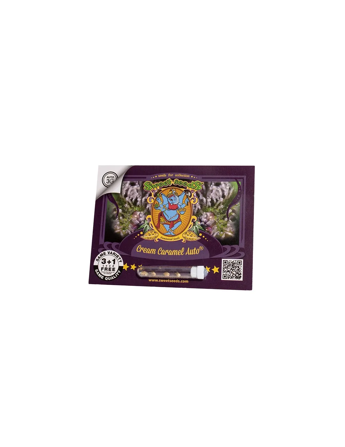 Autoflorescente de 3ª Geração. Versão autoflorescente da nossa Cream Caramel® (SWS04). Resultado do cruzamento das nossas melhores linhas de autoflorescentes de 2ª Geração com a Cream Caramel®. Autoflorescente de grande vigor híbrido, rápida floração, curta distância internodal e boa produção de ramas laterais. Produz abundante resina, densa e pegajosa que endurece durante a secagem das flores.